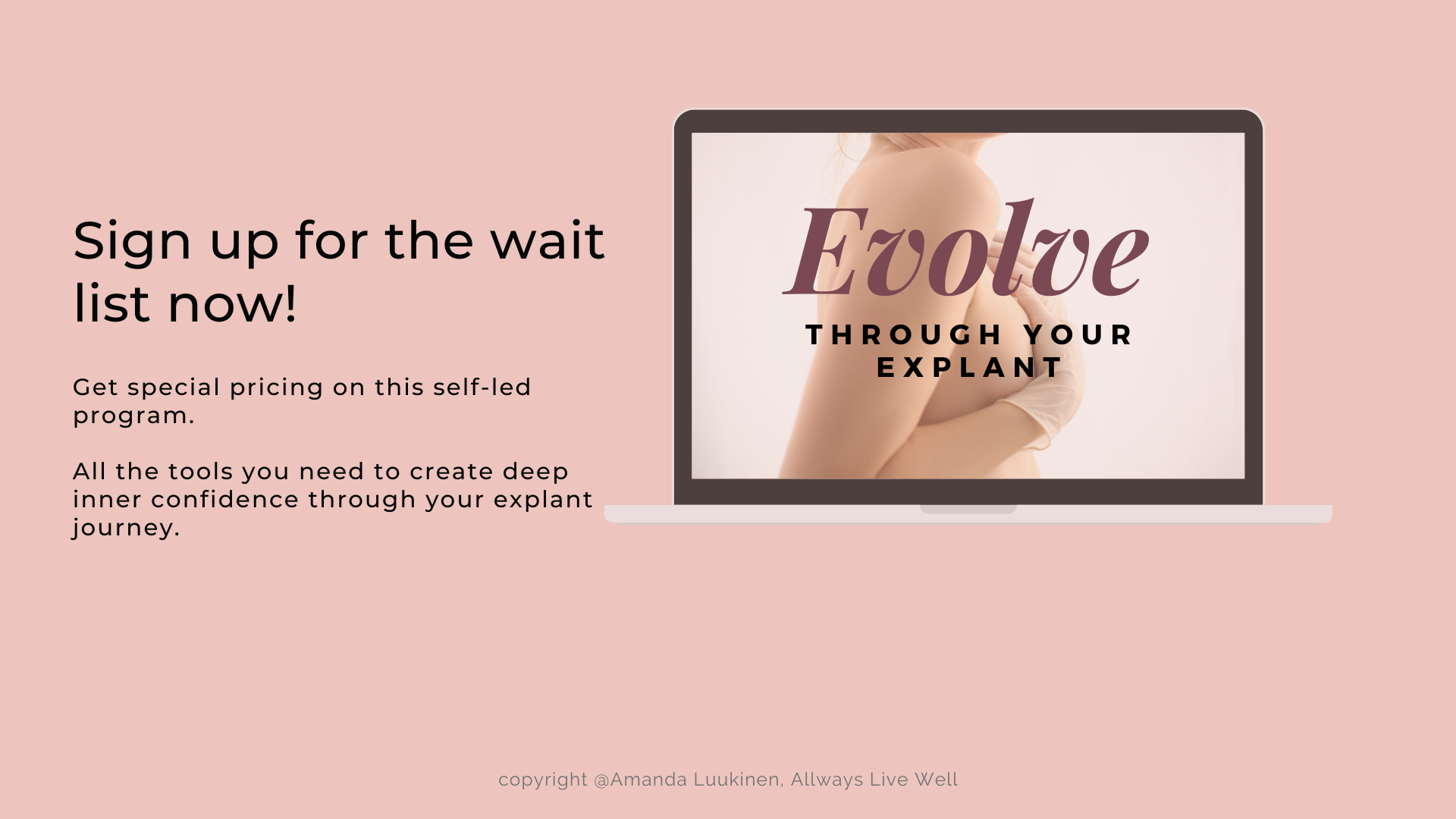 Sign me up! Sign up with your email address to receive special pricing and be the first to know when “Evolve through Explant” comes available! First Name Last Name Email Address Sign Up We respect your privacy. Please go to your inbox now to confirm your subscription to the email wait list! (might take 1-2 mins to deliver)